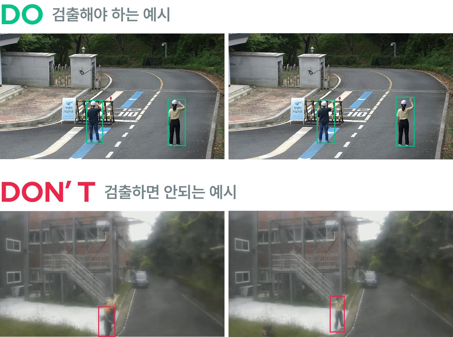 개발된 모델을 통해 영상 내에서 수신호를 검출한 Bounding Box 좌표로 평가가 진행됩니다.
