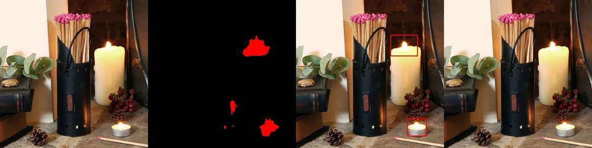 왼쪽부터 1) 원본 이미지 2) RSCM이 생성한 마스크 3) RSCM 마스크 기반 바운딩 박스 4) 모델 예측 결과
