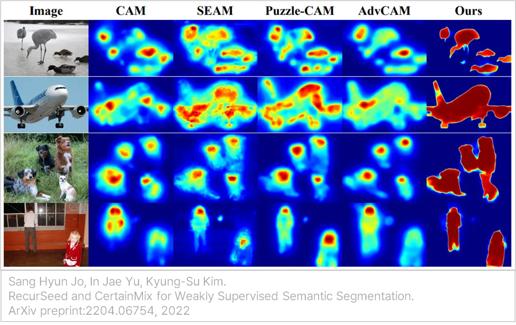 아래는 이미지별 각 접근법의 output으로, 가장 오른쪽의 RSCM이 명확한 경계를 생성하는 것을 확인할 수 있습니다.