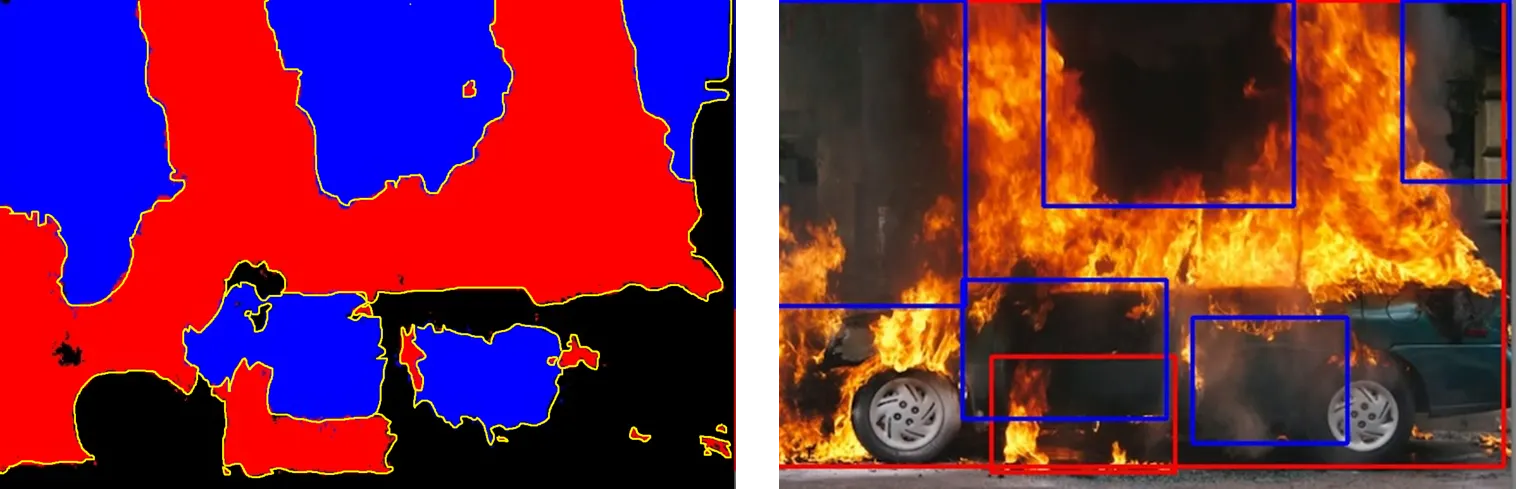 현재 이를 해결하기 위하여 RSCM을 통한 바운딩 박스 생성을 고도화한 뒤, 새로 바운딩 박스를 생성하여 Fire Detection 모델을 재학습하는 과정에 있습니다.