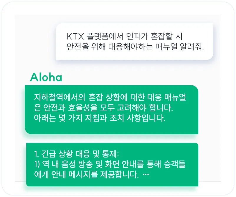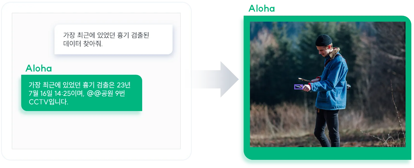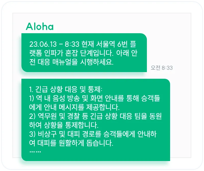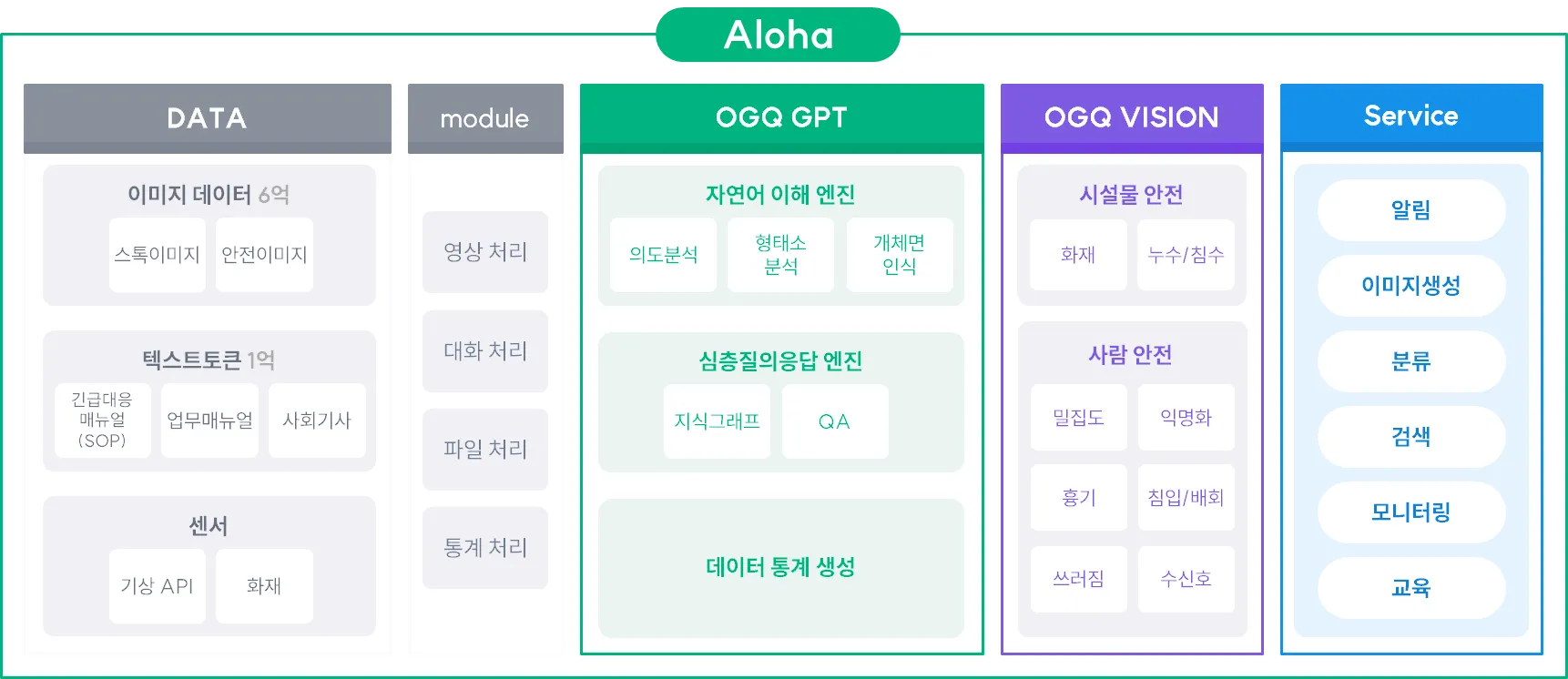 폐쇄형 공공안전 대화형 AI, Aloha는 크게 네 가지의 기능으로 활용 가능합니다.