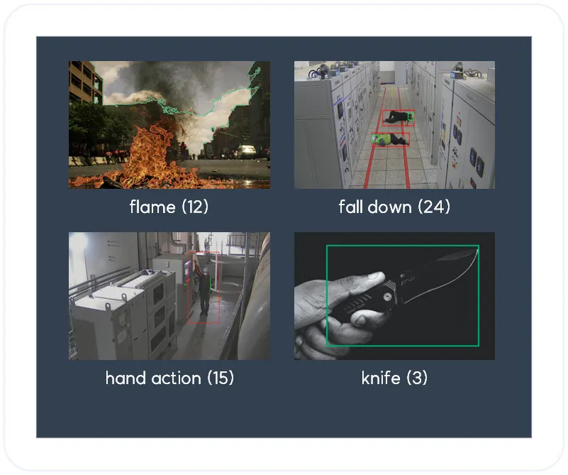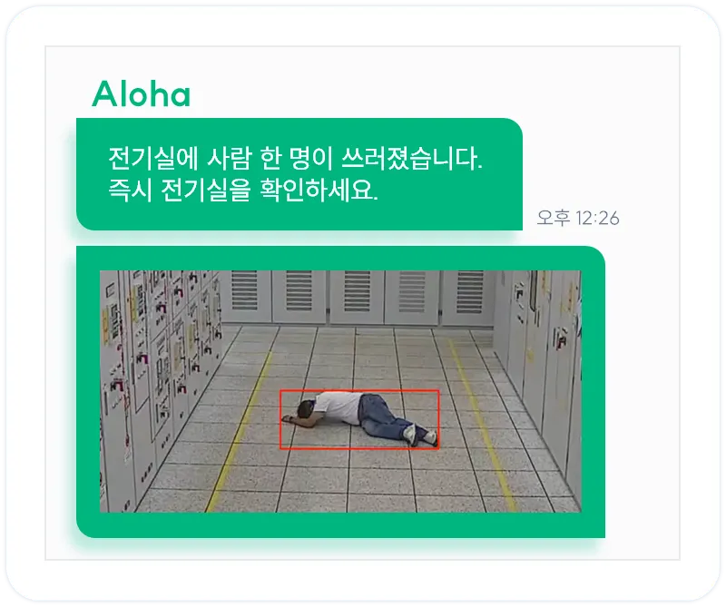 CCTV 영상 데이터를 분석 후 검출된 항목에 대한 알림 메시지를 생성합니다.
