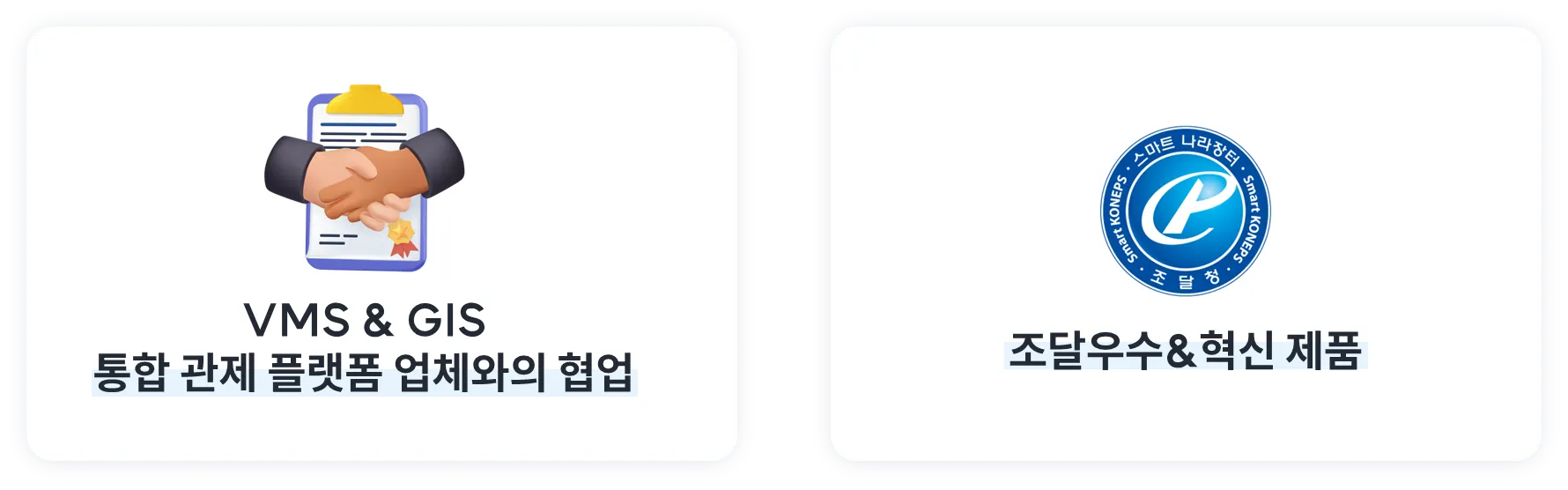 GIS 기반의 통합관제플랫폼(VMS) 업체와의 협업을 통해, 공공조달사업 조달우수, 혁신 제품을 목표로 진출하고자 합니다.