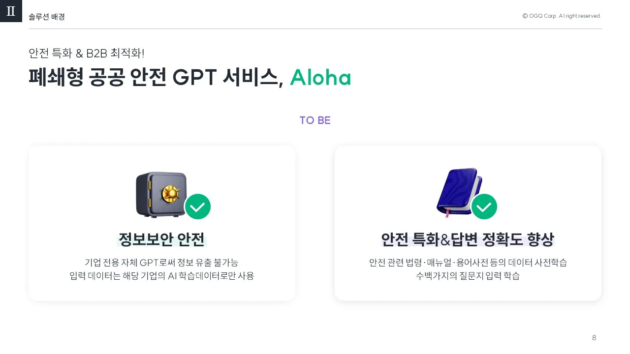 이번 세미나에선 OGQ GYN의 안전관리 대화형 생성 AI 서비스, Aloha(알로하)를 소개해드렸습니다.