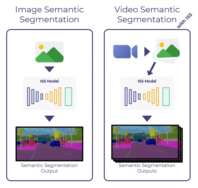 Video Semantic Segmentation(이하 VSS)을 구현하는 가장 기본적인 구조는 Image Semantic Segmentation(이하 ISS)를 활용하는 것입니다.