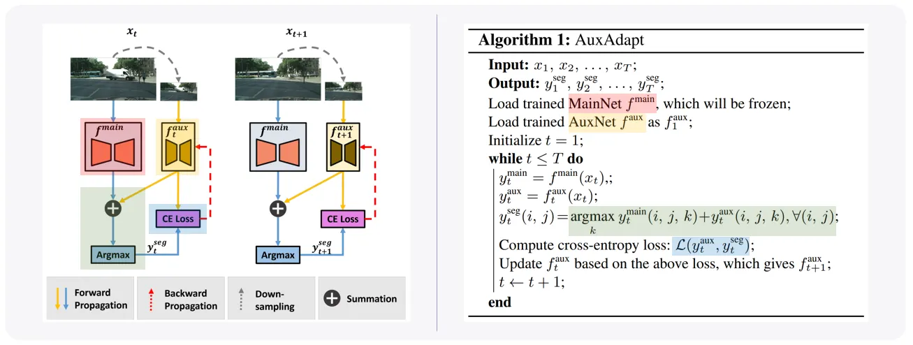 생성된 segmentation 결과와 AuxNet의 출력갑과의 CrossEntropy Loss를 구하고, AuxNet을 업데이트합니다.