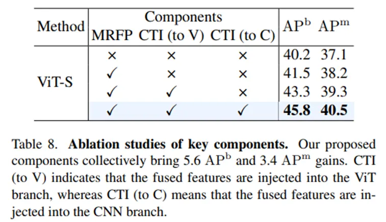 CTI를 bi-directional 설계를 통해 CNN feature와 ViT feature를 결합하여 CNN/ViT Branch에 붙였습니다.