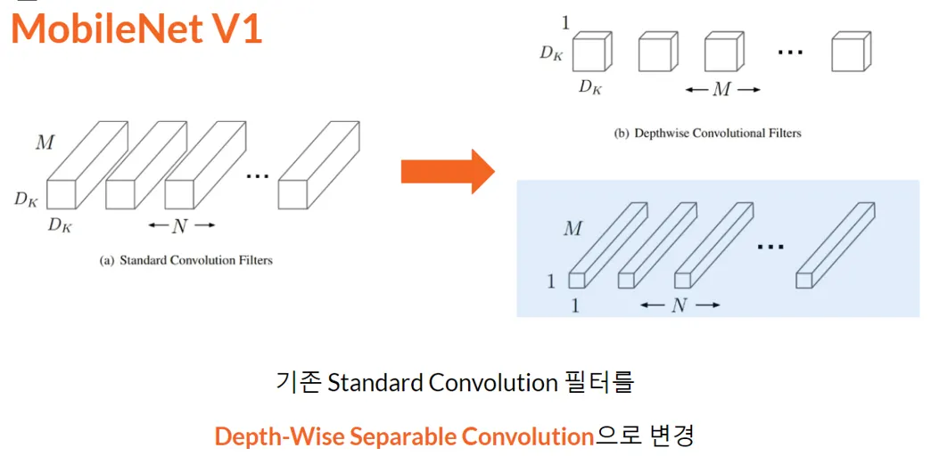 Standard Convolution 필터를 Depth-Wise Separable Convolution으로 변경