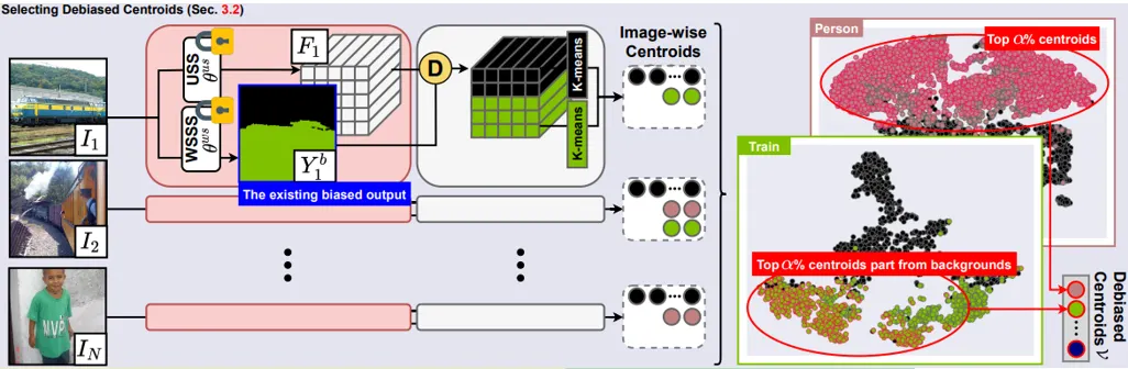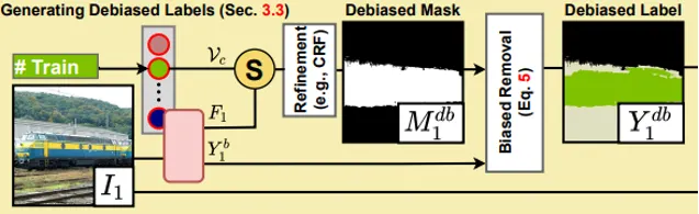 잘못 분류되었던 biased object는 이후 단계에서 이용할 것이기 때문에 WSSS결과와 합하여 debiased label을 얻습니다.