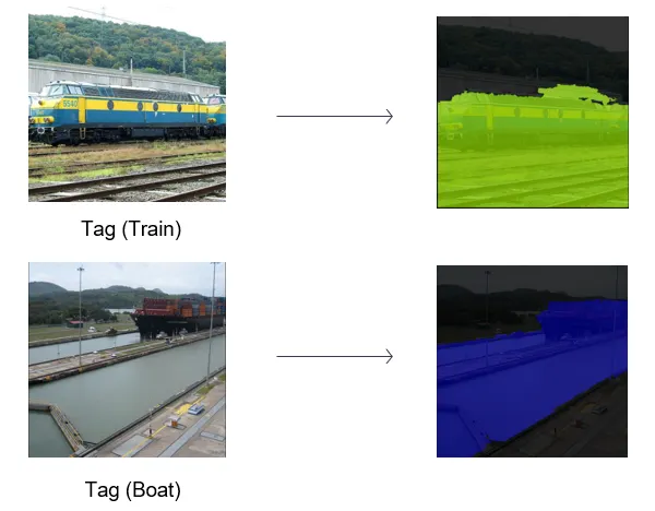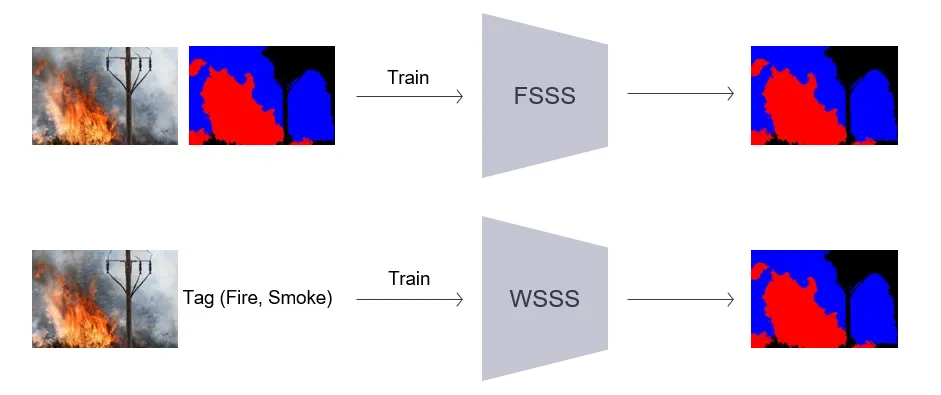 학습 시 segmentation label을 활용하는 Fully-Supervised Semantic Segmentation (FSSS)에 비해 더 간단하고 데이터의 수가 많은 tag label을 활용할 수 있다는 장점이 있습니다.