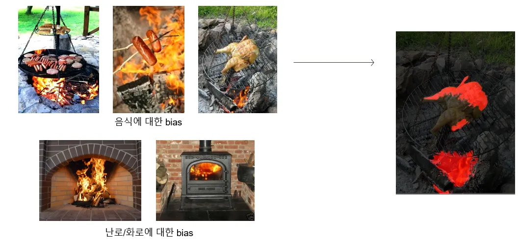 이와 같은 biased object 문제는 화재 데이터셋을 학습할 때에도 음식, 난로/화로에 대해서도 발생합니다.