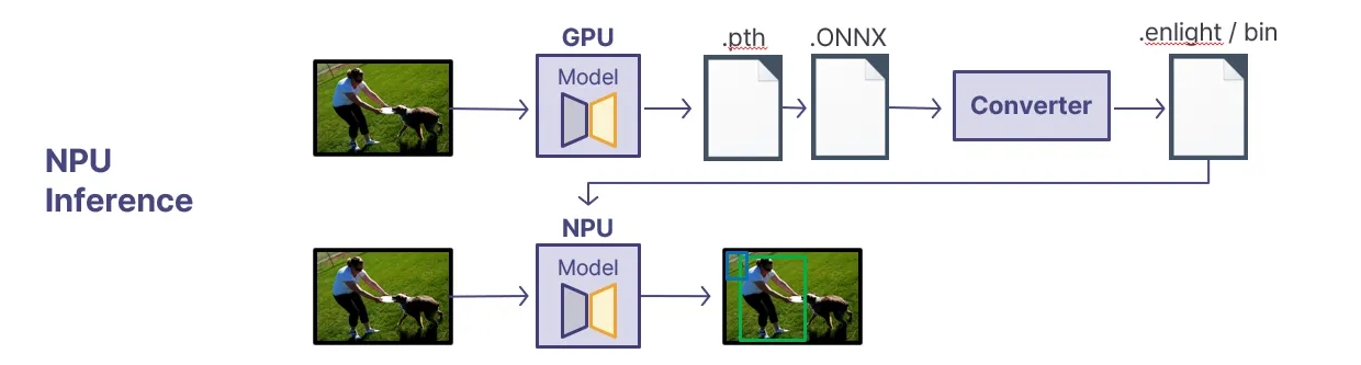 Inference 시에는 위 NPU + GPU Inference 그림과 같이 학습된 Converter가 추가되어 NPU의 출력을 원래 GPU의 출력으로 변환하여 동작합니다.