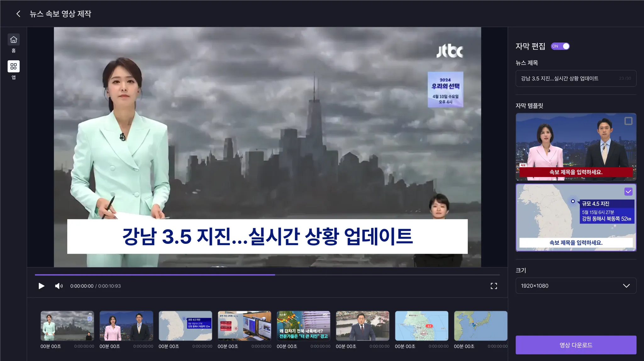 자동으로 관련 영상을 찾아 속보 영상을 손쉽게 제작할 수 있습니다.