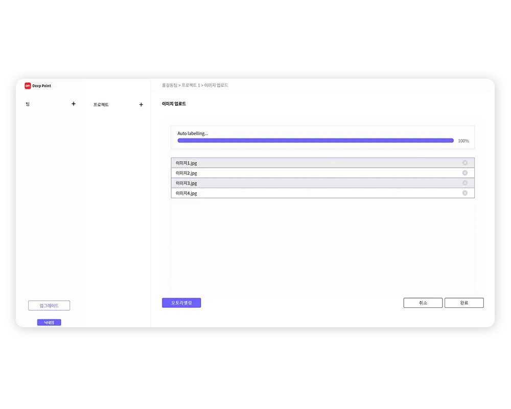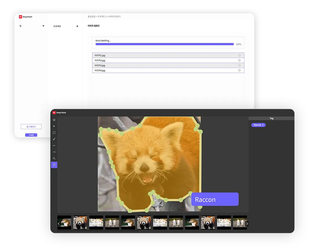 딥러닝 기술을 이용하여 AI가 우선적으로 데이터를 자동 라벨링 처리하여 작업의 효율성을 높입니다.