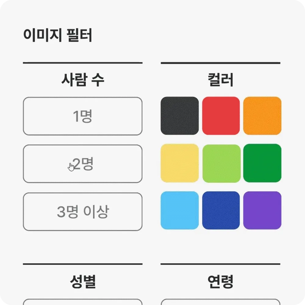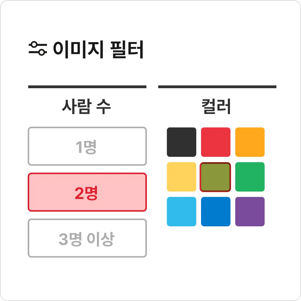 이미지 속성, 정보 등의 키워드를 반영하여 검색 효율성 증가, 필터 최적화