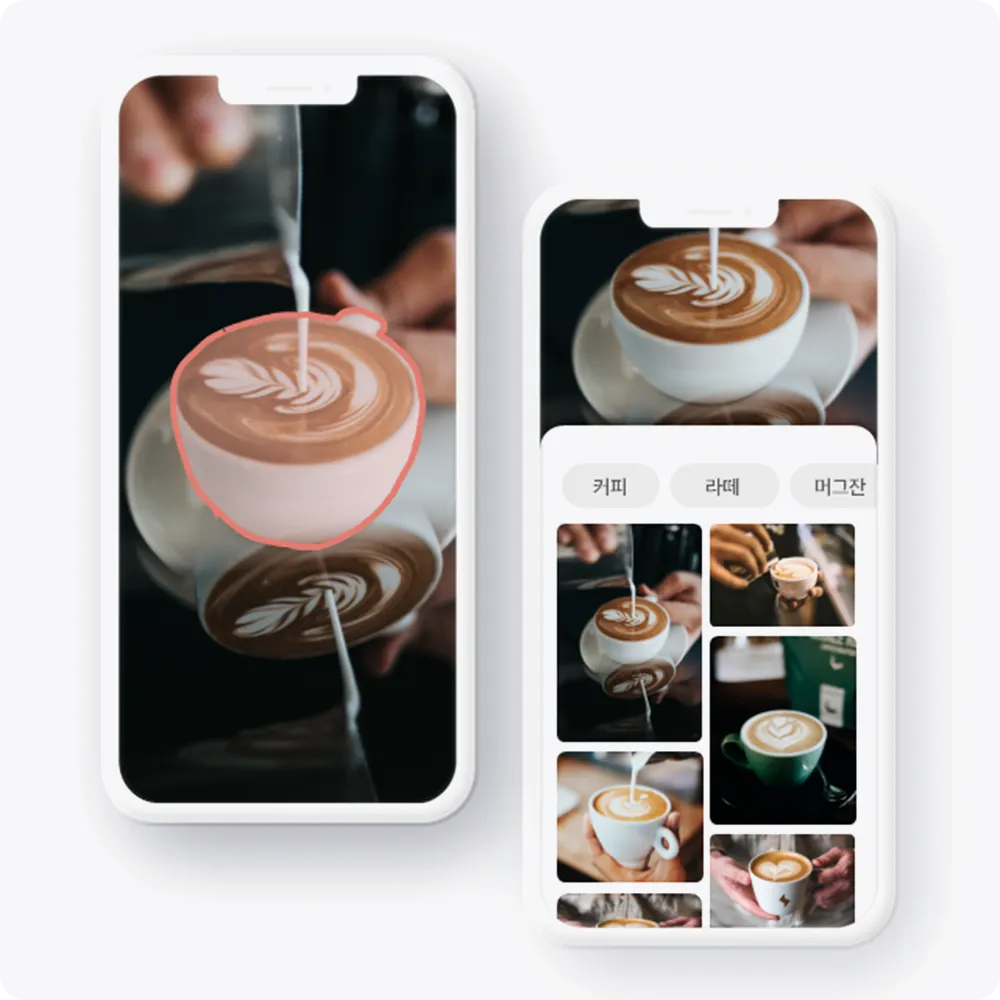 이미지의 객체를 자동 인식하여 그 객체만 검색합니다.