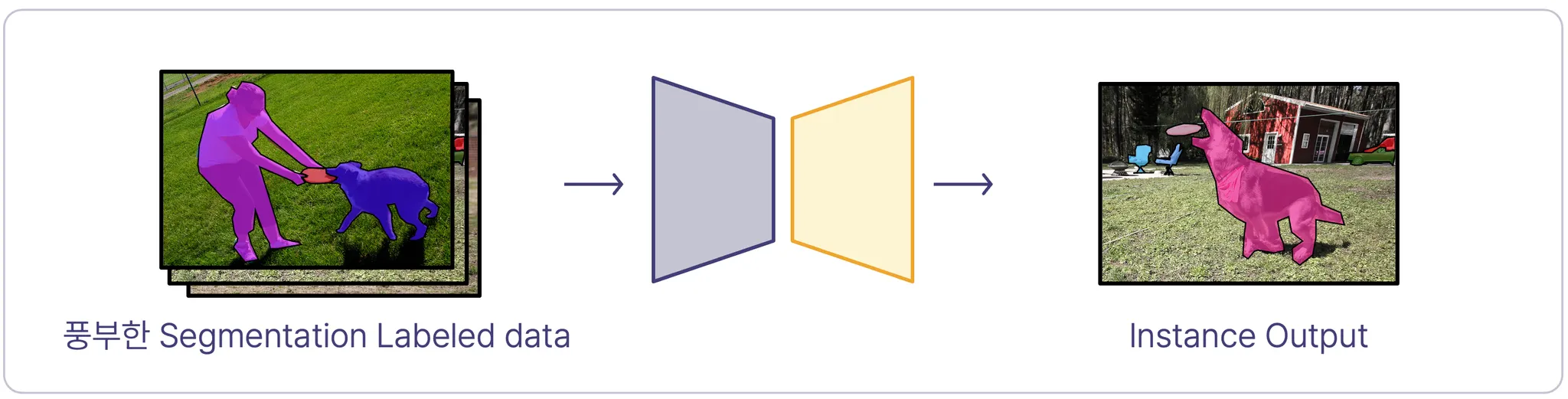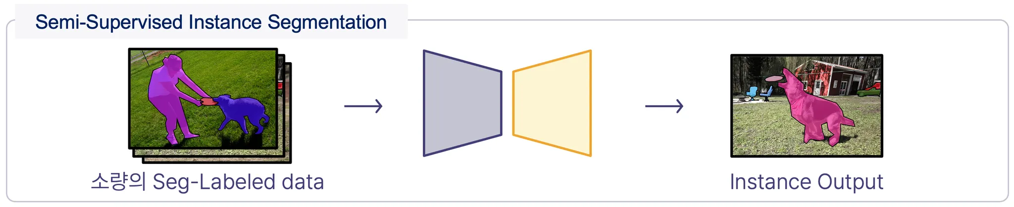 적은 양의 instance segmentation 레이블을 사용하여, instance segmentation 모델을 학습시키는 접근법입니다.