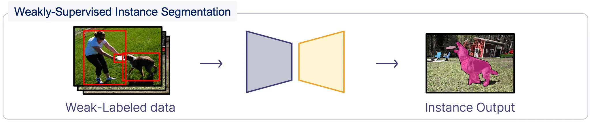 segmentation 레이블보다 약한 레이블을 사용하여, instance segmentation 모델을 학습시키는 접근법입니다.