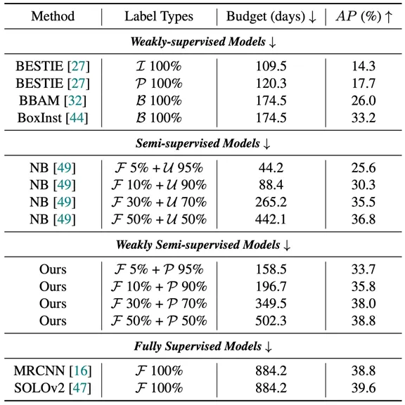 이러한 방법들은 비용 면에서 잠재력을 보여주었으나, segmentation labels을 사용한 접근법 대비 큰 성능 차이가 존재합니다.