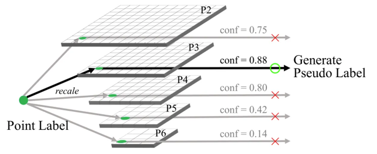 point labels의 위치에서, 최대의 confidence score를 달성한 레이어에서 instance mask를 생성할 수 있도록 합니다.